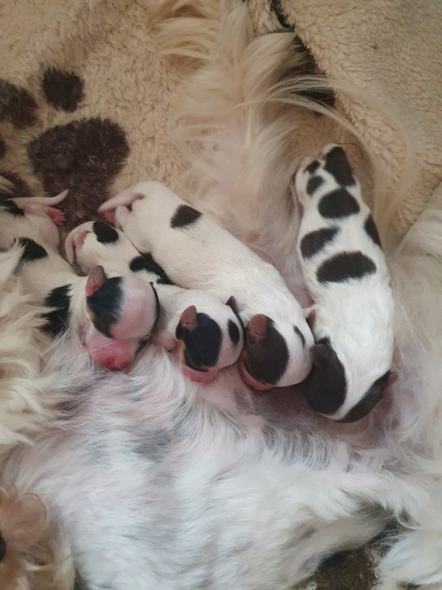 Unsere älteste Hündin, Kira, hat bereits drei Geburten hinter sich und ist fünf Jahre alt. Sie ist eine wahre Löwenmutter, die jeden Welpen beschützt, egal von wem er ist. In der Welpenzeit patrouilliert sie wie ein Sicherheitsdienst durch die Wohnung. Kira hat eine wunderschöne Blue/Tan-Färbung und wiegt nach der letzten Geburt, bei der sie zehn Welpen zur Welt brachte, 3,7 kg. Eine wahre Heldin!